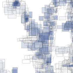 The rendering technique settling on for this series plots thousands of separate boxes along each
